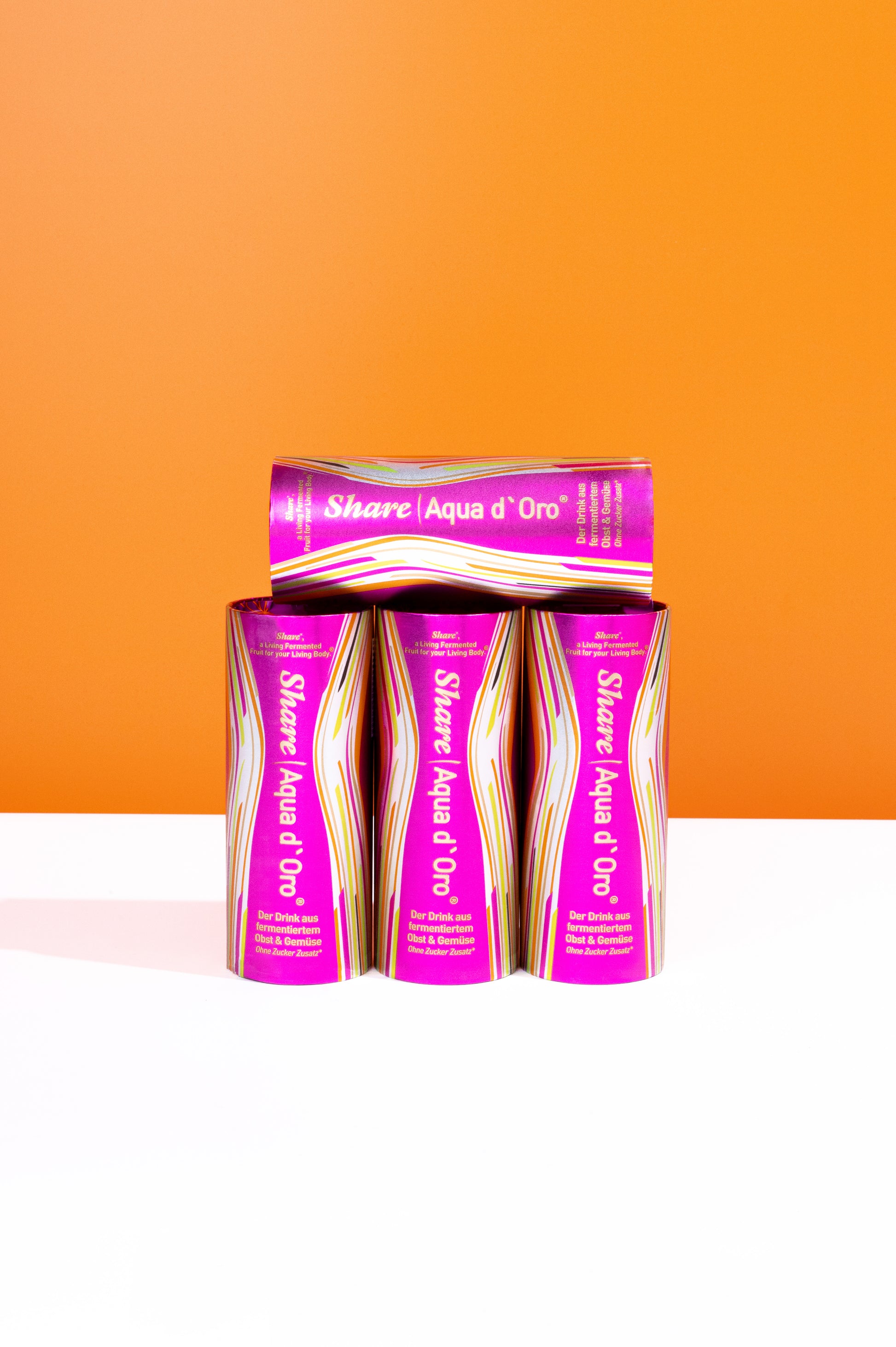 ShareAqua d'Oro® is an innovation: The first drink made from the juice of fermented fruits and vegetables. The "golden water" contains 24 different fruit and vegetables.